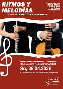 Am Sonntag, den 26. April 2026, wird im Haus Bachem in Königswinter ein außergewöhnliches Konzert zu erleben sein. Um 17 Uhr entführen die Musiker Jakob Kümmel (Gitarre), Felix Reckers (Gitarre) und Lea Hüttemann (Querflöte) ihr Publikum auf eine faszinierende musikalische Reise durch die traditionsreiche und leidenschaftliche Musik Spaniens und Südamerikas.