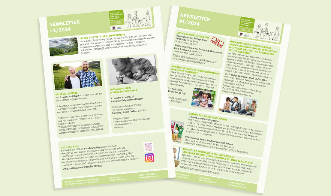 Der aktuelle Newsletter #1/2024 der interkommunalen Familien- und Erziehungsberatungsstelle der Städte Bad Honnef und Königswinter (FEB) informiert Eltern aus dem Siebengebirge über Angebote der FEB zu familiennahen Themen im 1. Halbjahr 2024.