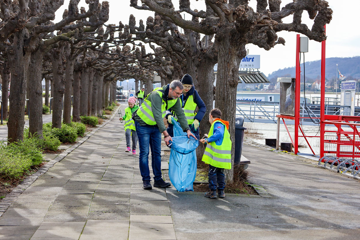Zum Beginn der stadtweiten Reinigungsaktion am Samstag, 18. März 2023 machten sich am Vormittag Mitarbeitende der Stadtverwaltung zusammen mit Bürgermeister Lutz Wagner und Dezernentin Heike Jüngling in der Altstadt von Königswinter auf den Weg, um Müll einzusammeln. Am Rhein, in der Fußgängerzone und rund um die Altstadtgassen wurden hauptsächlich Zigarettenstummel, Plastik- und Papierteile gefunden. Aber auch Kuriositäten wie eine Schuhsohle oder eine Krücke waren mit dabei.