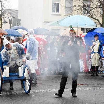 Aufgrund des nassen Wetters wurden dem gesamten Fußvolk und karnevalistischen Adel nach harten Verhandlungen und Wortwechseln auf beiden Seiten doch noch Eintritt gewährt. Der lautstarke Sturm auf das Rathaus konnte nun nicht mehr gestoppt werden.