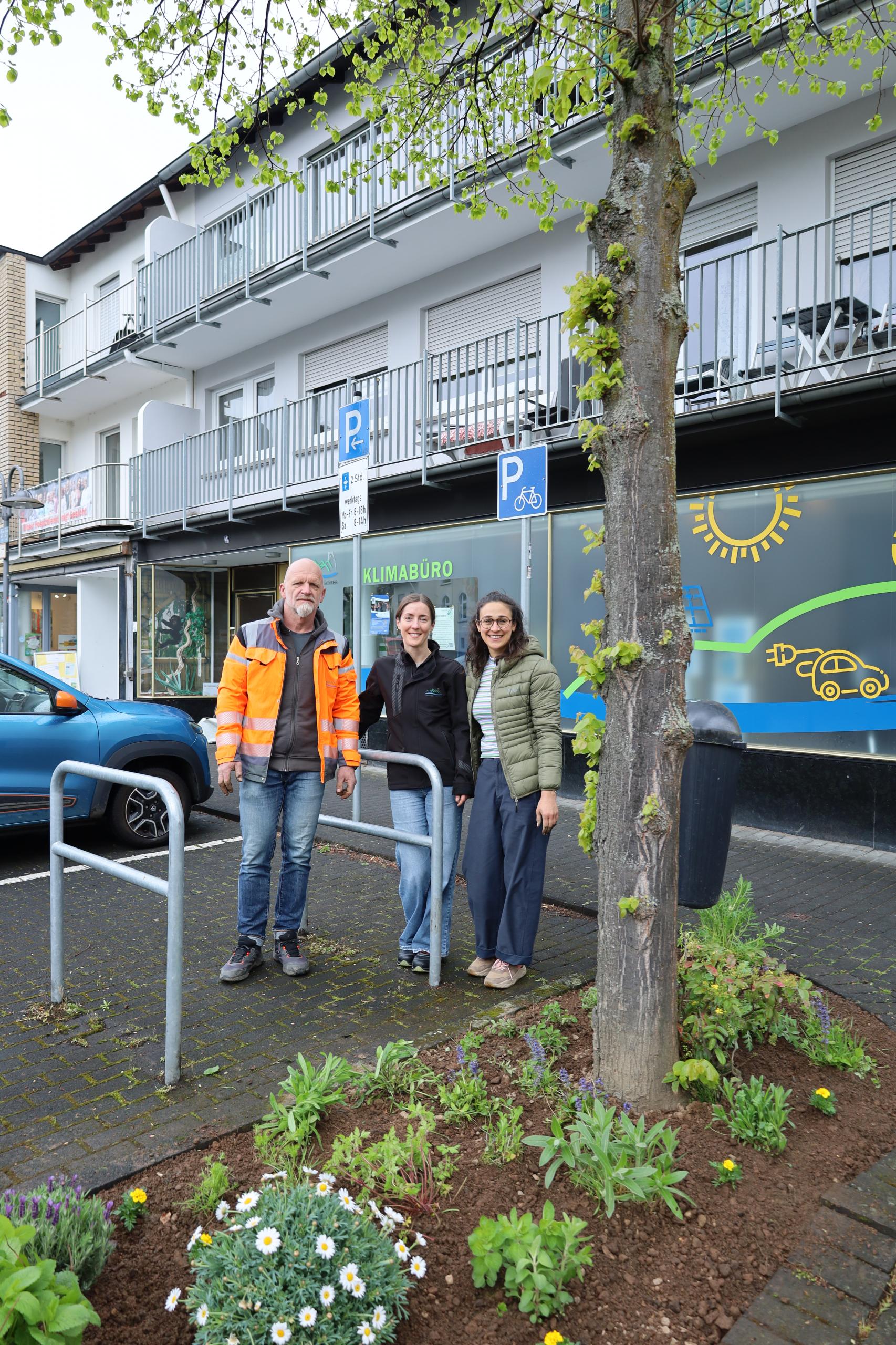 Die Mitarbeiterinnen des Klimabüros der Stadt Königswinter machen den Start und übernehmen die Pflege für eine Fläche an der Dollendorfer Straße in Oberpleis. In einer gemeinsamen Pflanzaktion mit dem Baubetriebshof wurde die Fläche entsiegelt und mit Kräutern, Lavendel und Blumen bepflanzt.