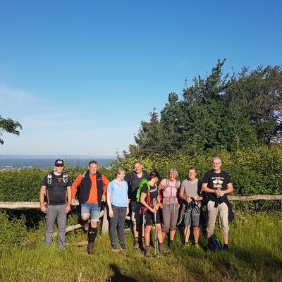 Pünktlich um 7 Uhr begann Bürgermeister Peter Wirtz mit einer Gruppe von 10 Personen auf dem Petersberg die Wanderung über die sieben Berge. Zuvor waren die Teilnehmer persönlich von Landrat Sebastian Schuster begrüßt worden.