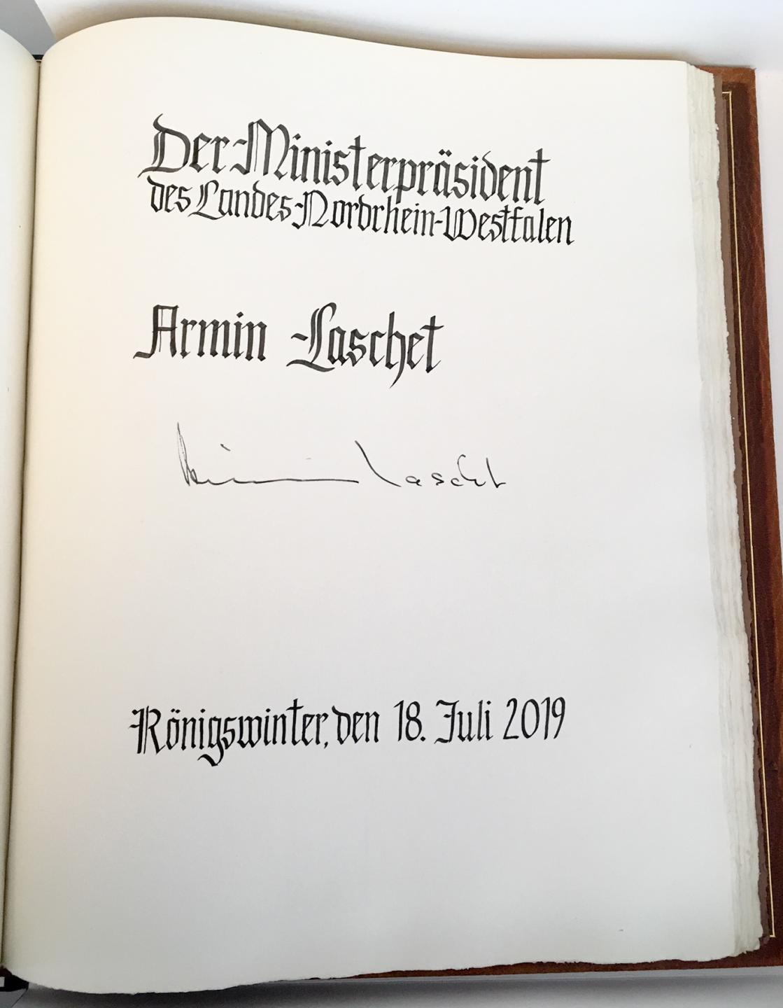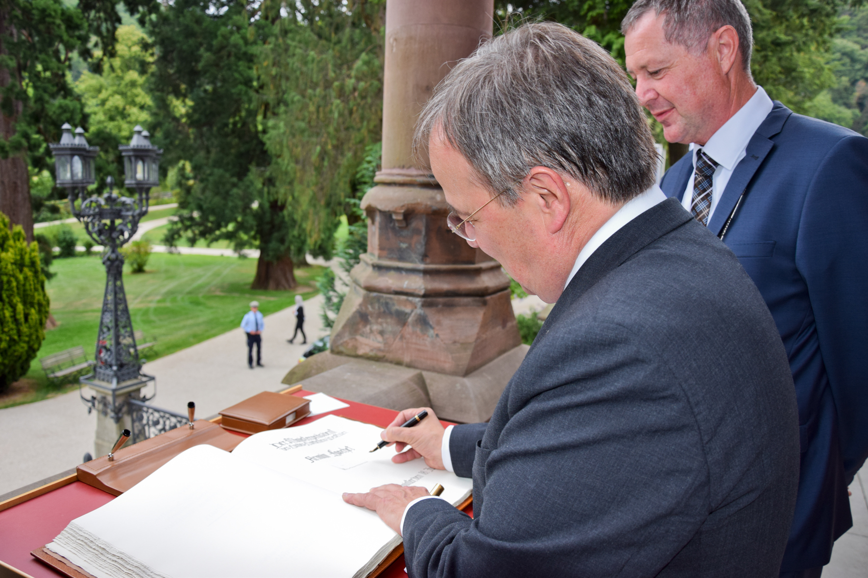 Ministerpräsident Armin Laschet trägt sich in das Goldene Buch der Stadt Königswinter ein