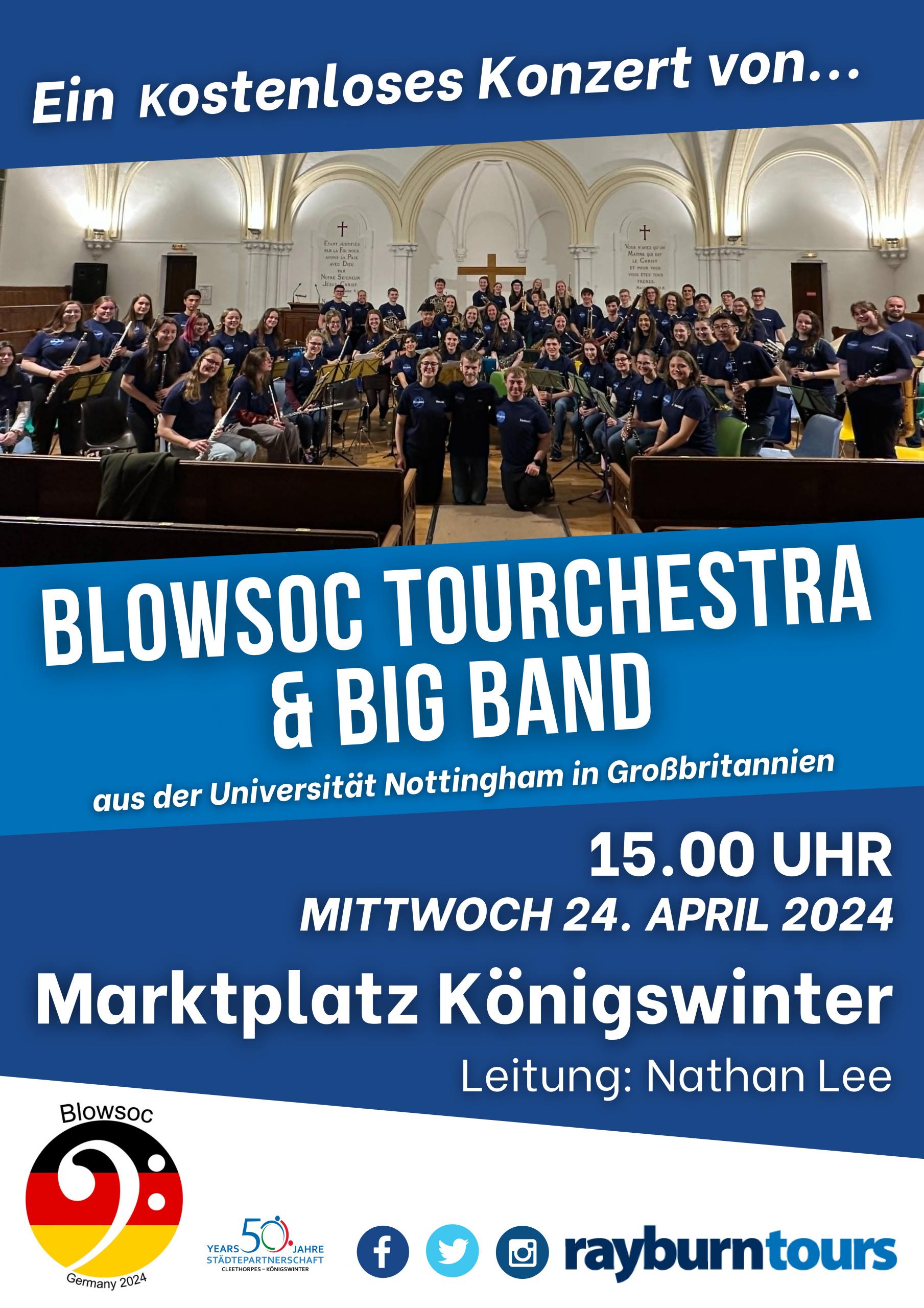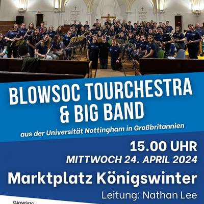 Das „Blowsoc Tourchestra” und die „Big Band” der Universität von Nottingham eröffnen damit die jährlich in Königswinter stattfindende Reihe mit Konzerten britischer Jugendorchester.