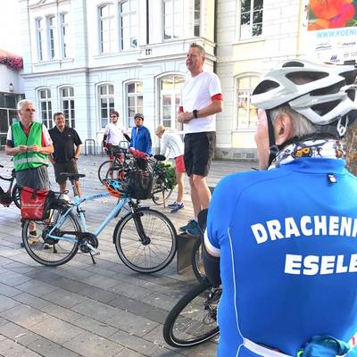Zusammen mit Bürgermeister Peter Wirtz fuhren am 11.08.2019 über 30 motivierte Radler stolze 50km entlang der Stadtgrenze von Königswinter. Der Bürgermeister begrüßte die Radfahrer vor dem Start der Tour am Marktplatz Königswinter und führte die Radler fortan durch die geplante Fahrstrecke. Sie überwanden dabei innerhalb von gut 4 Stunden u.a. 880 Höhenmeter.