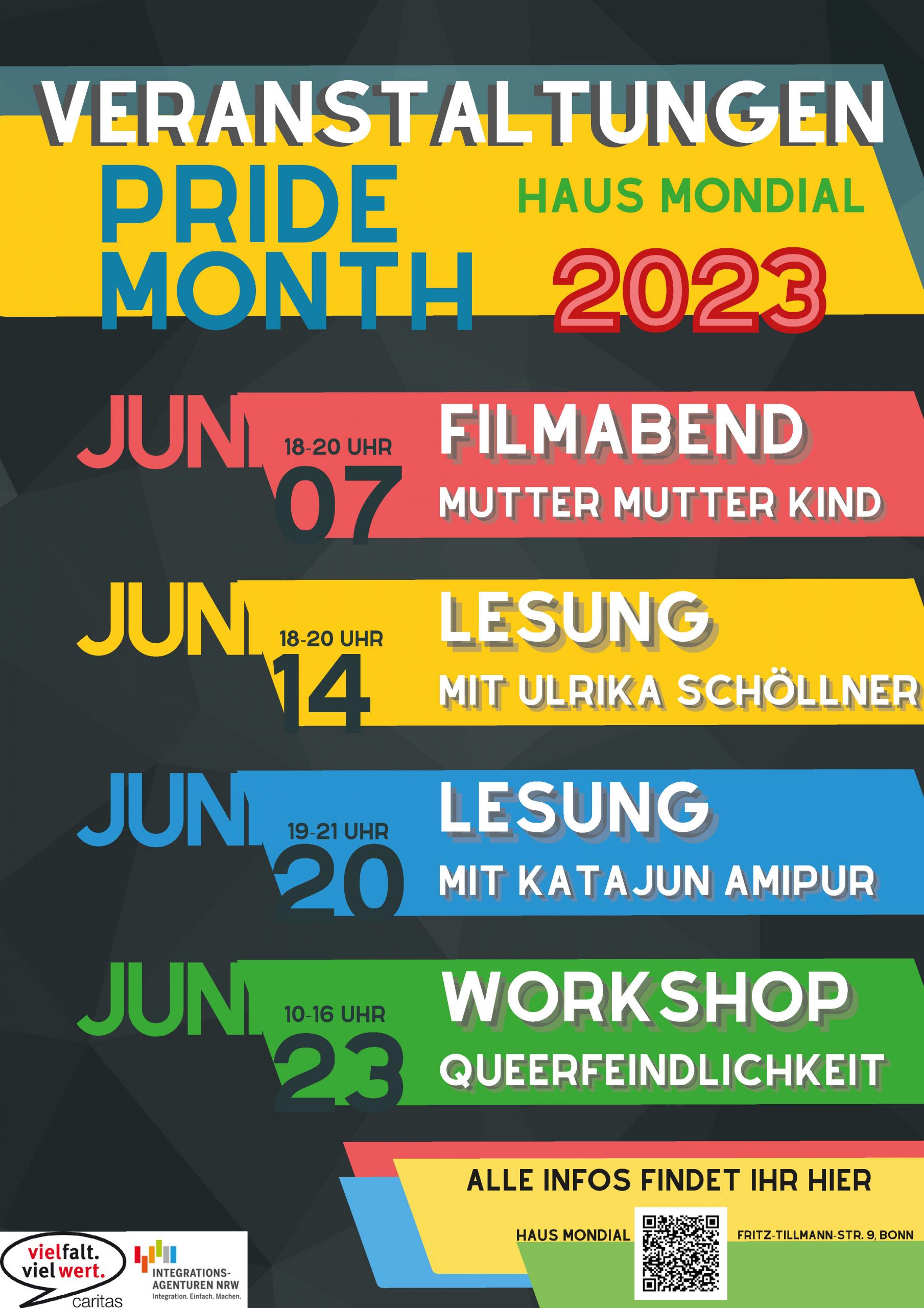 Das Haus Mondial lädt herzlich ein zu verschiedenen Veranstaltungen zum Thema SELBSTBESTIMMUNG im pride month: